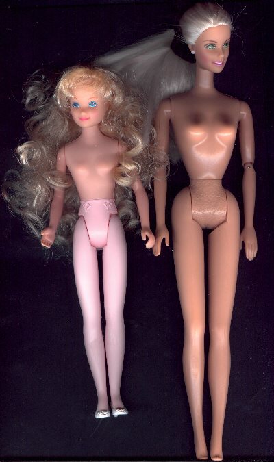 The Princess is much more petite than Barbie. She has a light pink colored torso with white high heels molded on. She is closer to the size of Lady Lovely Locks but has a skinnier waist. Her back is marked Made in China and the back of her head is marked AGC '85.